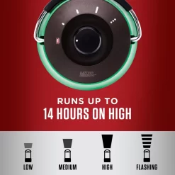 The 1000 Lumens LED Lantern with BatteryGuardâ„¢ stops battery drain so you have power when you need it most. Conventional lanterns experience residual power drain as long as batteries are connected to the circuit. With BatteryGuard, batteries are automatically disengaged from the circuit when the lantern is turned off to extend their life by as much as 25%. It also reduces the chance of damaging corrosion so batteries can be stored in the device for years (up to their inherent shelf life). Additional features include a rotating dial to switch between high, medium, low, and flashing modes, up to 14 hours runtime on high using 4 D batteries (sold separately), water resistance, impact resistance up to 2 meters (on dirt), and lifetime LED bulbs that never need replacing. No matter the situation, this BatteryGuard lantern with a 16-meter beam gives you Power When You Need Itâ„¢.
