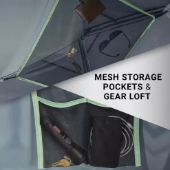 - Mesh storage pockets and a gear loft keep small items organized