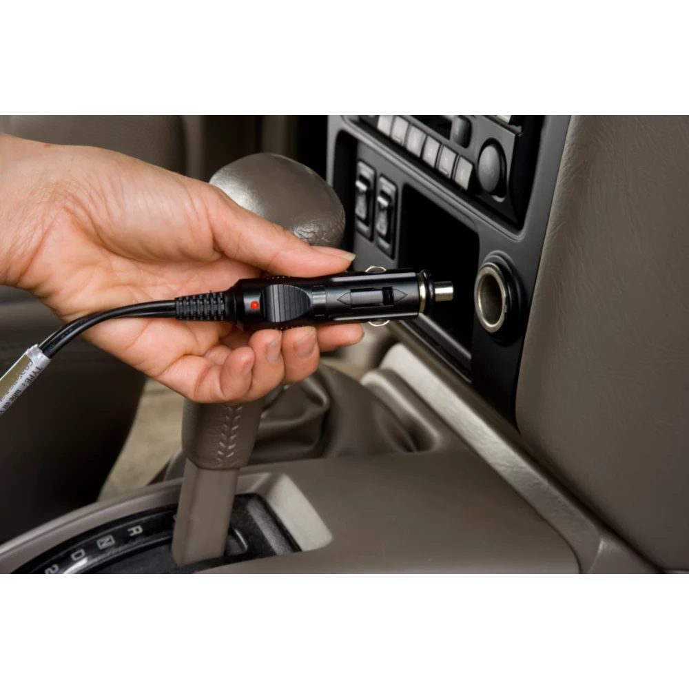 • 12V plug (5 Amps/60 Watts) with an 8-ft. power cord lets you power the pump from your car or boat outlet