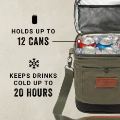 Made with premium materials and distinctive details, the ColemanÂŽ Banyan Series⢠12-Can Soft Cooler Tote is the perfect cooler bag for your next barbecue, tailgate, or festival. Designed to reflect the legacy of Coleman, this soft cooler has a sturdy waxed canvas exterior that repels dirt and water and faux leather accents that withstand scratches and scrapes. Food and drinks will stay cold for up to 20 hours while grilling in the backyard or cheering on your team at the tailgate. The padded top handle and shoulder strap make the cooler more comfortable to carry to your favorite spot at the festival. Stash your phone, keys, or wallet in the front and back pockets so they don’t get lost. You’ll also enjoy easy access to a water bottle or sunscreen thanks to pleated side pockets. Nothing extra to carry? The pleated pockets smoothly compress down when they’re not in use. The antimicrobial leakproof liner helps prevent odor, mildew, and mold so you feel confident using this cooler season after season.