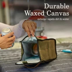 - DURABLE: Waxed canvas and reinforced coating on base repels dirt and water; vintage accents, hook closure, and badging recalls classic ColemanĀ® style ā