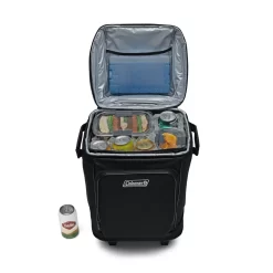 Meet the CHILLER⢠42-Can Soft-Sided Portable Cooler with Wheels. Whether youâre bringing drinks to the game or keeping the fam fueled on a hike, this coolerâs easy to transport thanks to its telescoping handle and durable wheels. This coolerâs exterior is made from recycled polyester fibers so youâll help reduce your impact on the environment.