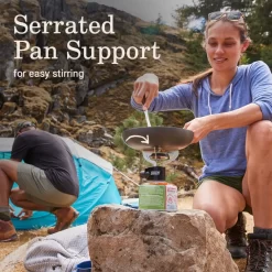 - ULTRA-LIGHTWEIGHT: Stove weighs 6.7 oz. without fuel attachment; folding pan support lets you fit in your backpack while camping, hiking, and more