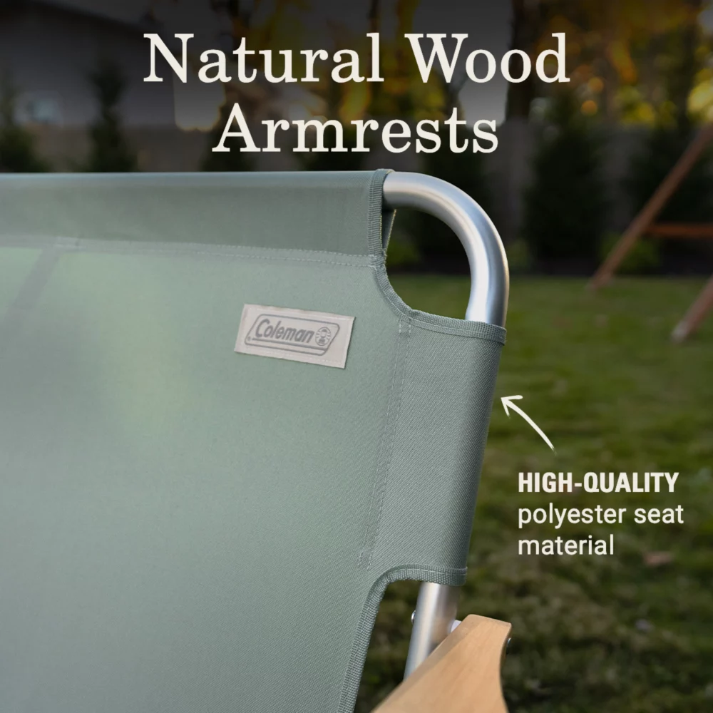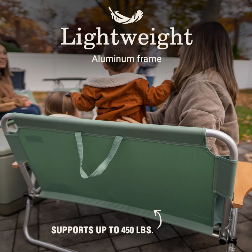 A loveseat for the outdoors? We’re in! The Coleman® Living Collection Bench is roomy enough to seat 2 people and supports 450 lbs., so go ahead and share or have it all to yourself. The lightweight frame makes it easy to move whether youâre in the backyard or at the campsite. Natural wood armrests add a stylish look thatâs perfect for the patio or a glamping-inspired getaway. Made of high-quality polyester seat material that lasts season after season. Rain in the forecast? The bench folds up easily so you can store it away from the elements.