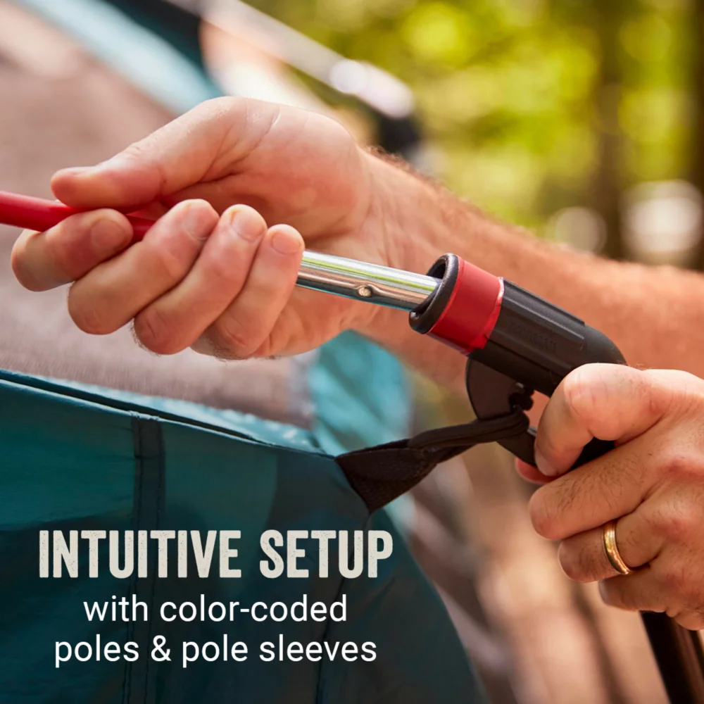 - Color-coded poles and pole sleeves provide easy, intuitive setup
