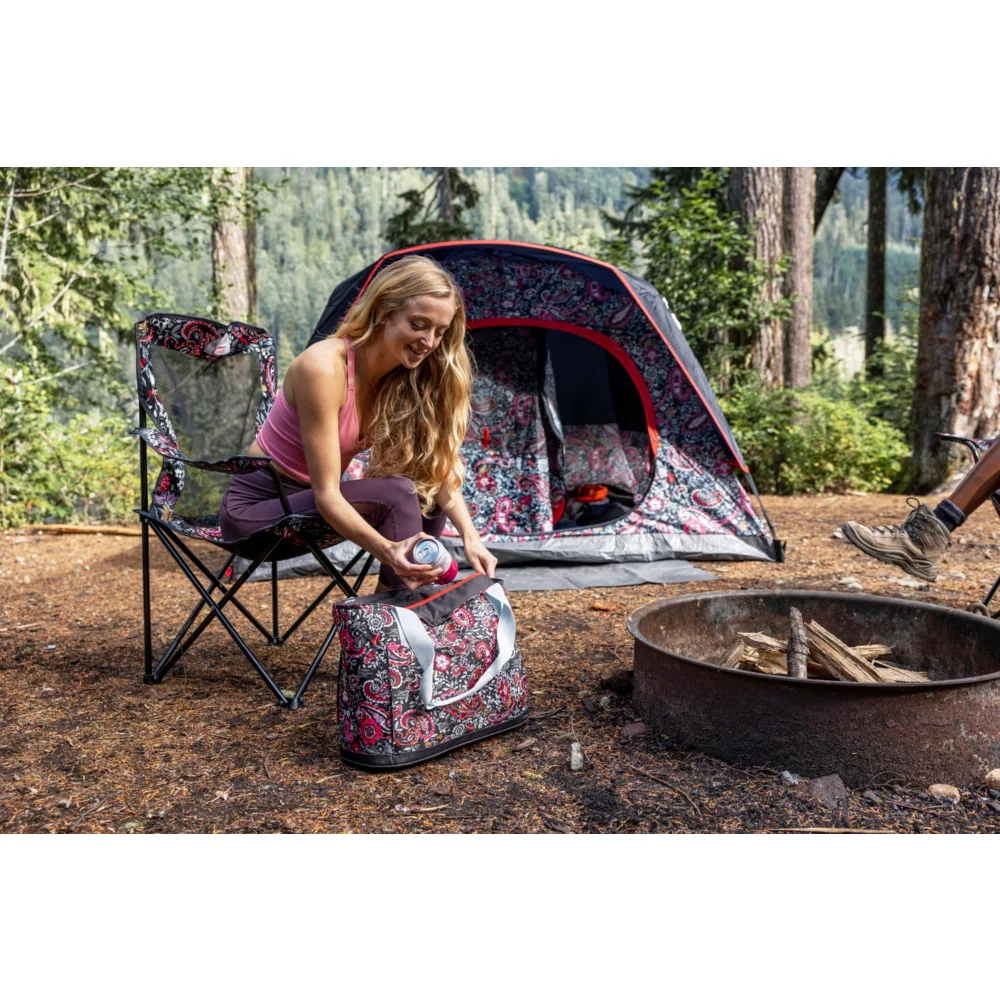 Inspiring new adventures, this limited-edition collection pairs Vera Bradleyās iconic patterns and purposeful functionality with Colemanās storied heritage and outdoor expertise. The Vera Bradely + ColemanĀ® 28-Can Soft Cooler Tote is built to keep drinks and food cold for your picnic or backyard get-togethers and reflect your personal style. The sturdy exterior of this portable, one-of-a-kind cooler means itāll last, while leakproof, welded internal seams keep things dry. Padded handles make it easy to carry, even if itās a bit of a hike to the music festival.